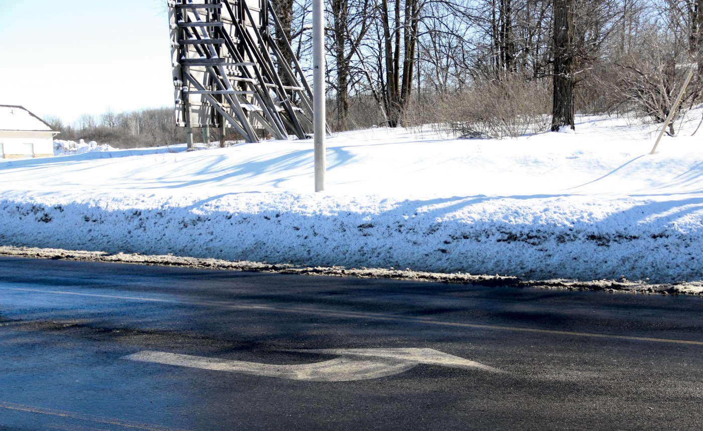 That arrow to nowhere is just part of several arrows to nowhere that will one day soon become entrance/exists to this development. They were part of the pavement marking scheme completed this fall as part of the O’Brien Road construction.