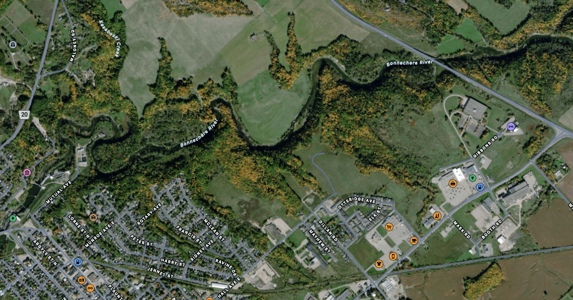 A quick look at a satellite shot of Renfrew shows a large tract of land along the south bank of the Bonnechere River, running from the end of Mutual Avenue all the way to where the Public Archives are located near the Best Western Hotel. There’s some depth to this land, and a cursory look reveals what appears to be a luxury of room for residential development done tastefully, even incorporating natural features that already exist in place, like the river itself.