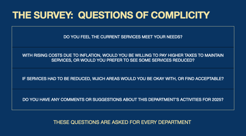 The town is pumping a survey of theirs where they hope to get some direction on where to go as they approach the time when they have to do The Big Reveal, also known as the 2025 Municipal Budget.