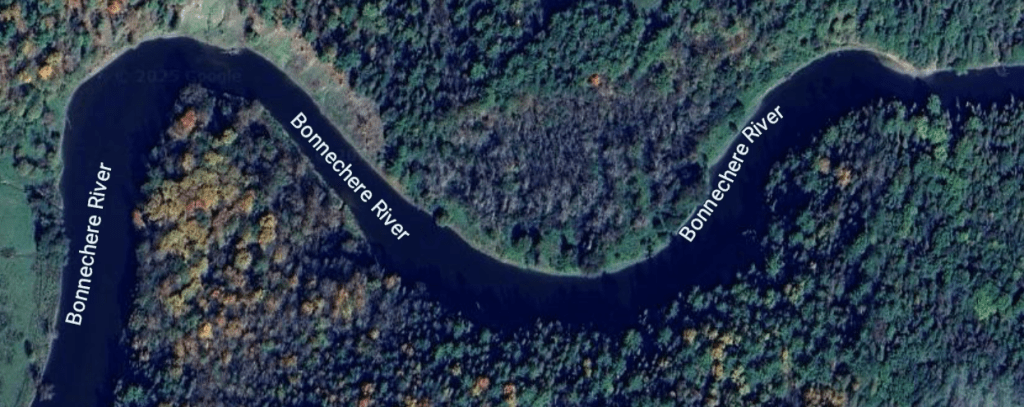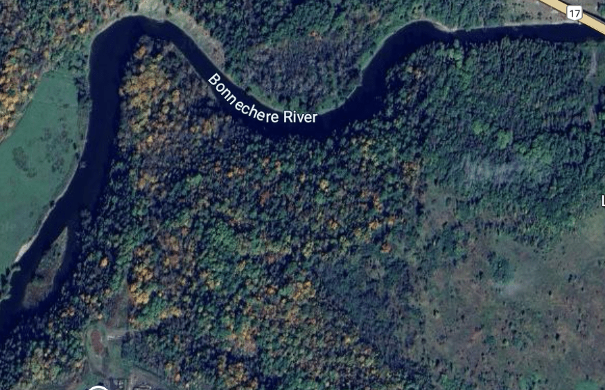 As currently planned, the Bonnechere Trail will extend from the Bonnechere River at its Highway 17 point to a place very near to the Hunter’s Gate development area, close to Forestview Crescent. Right now, the plan calls for a trail some 1.6 km in length, give or take a rock throw, and definitely not as the crow is inclined to fly.