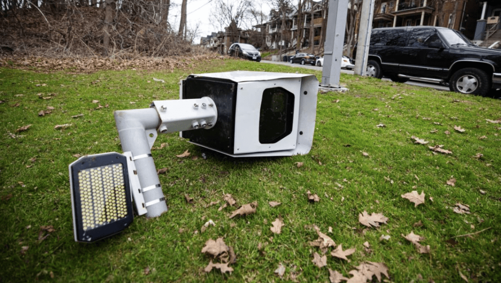The we are the City of Toronto, and a concerned neighbourhood group. The they are the people, or maybe just person, who seem intent on committing regular acts of vandalism on city-owned properties and assets. And the it in this case is a traffic camera, specifically a speed-camera, better known as photo radar.