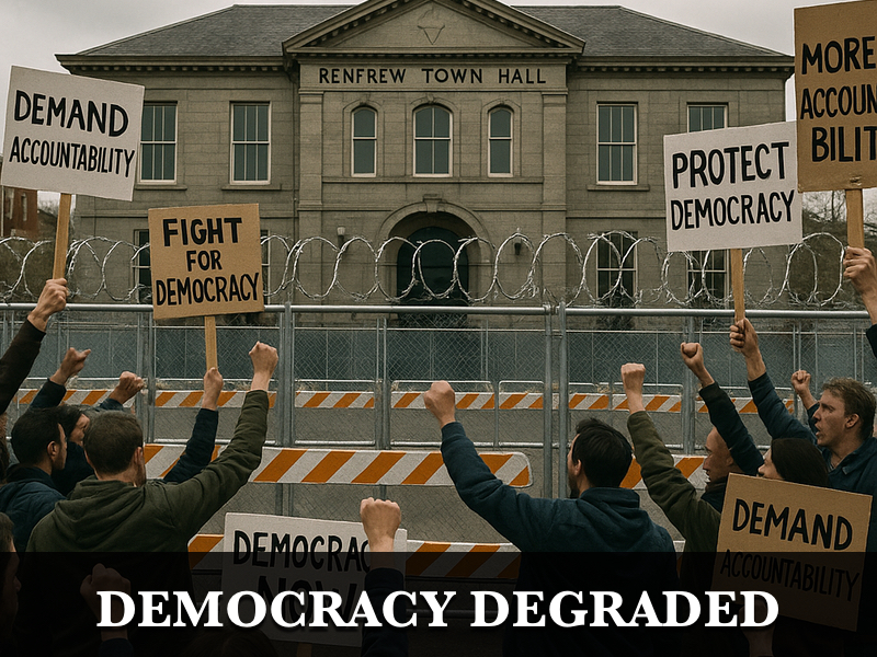 But democracy is imperilled here in Canada as well, and yes, it clings to life right here in Renfrew, where municipal mandarins and an either weak or complicit, perhaps even incompetent mayor team together to deny democratic process in municipal government.