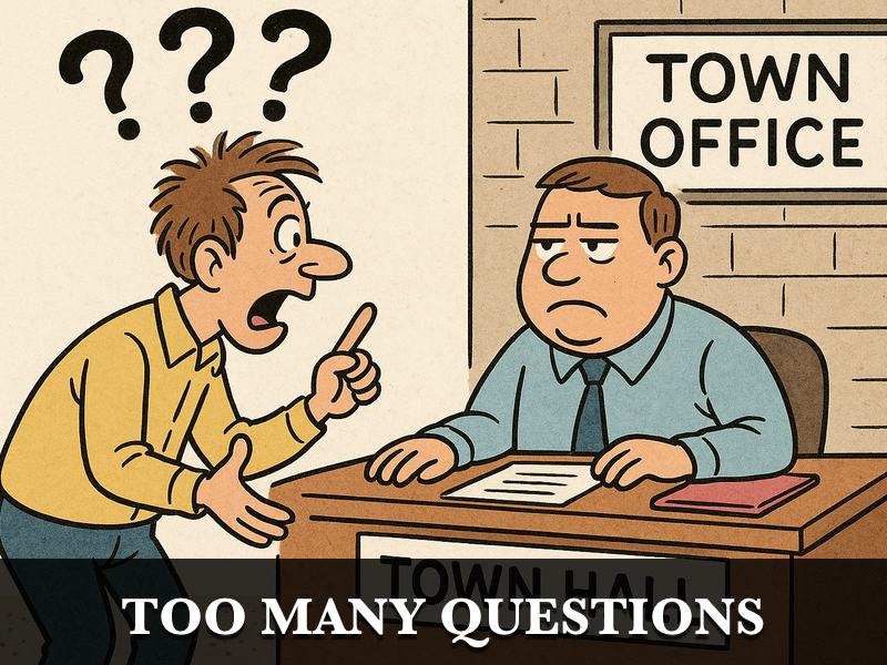 One has to wonder from whom, as in who has all these questions that brings the town to an abrupt halt, not so much in a functional day-to-day manner, but in the way things like democratic responsibility, democratic process, transparency, and accountability are handled, and by extension, respected.